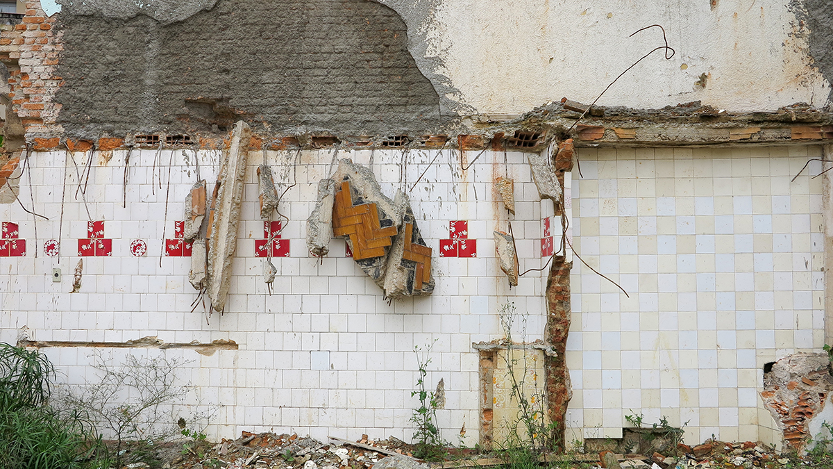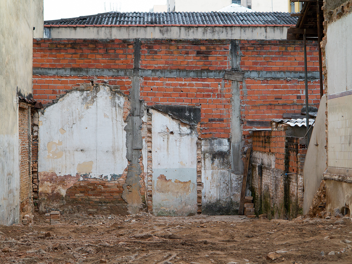 ‘E uma pesquisa em processo iniciada em 2010 onde percorro casas e prédios demolidos na cidade, nos bairros das Perdizes, Pompéia, Campos Elíseos, Higienópolis e Vila Madalena.Com base nessa exploração o trabalho tem referências nos signos urbanos revelando questões sócio- econômicas da cidade, em que o desenvolvimento e o abandono interagem.